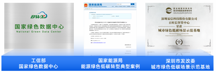 在节能合规方面,百旺信智算中心通过应用入选《国家通信业节能技术产品推荐目录》的产品与技术,实现年均PUE值1.21的节能成效,并先后获评“国家绿色数据中心”、“国家能源绿色低碳转型典型案例”、“城市绿色低碳转型示范基地”,满足金融业务能效合规需求。